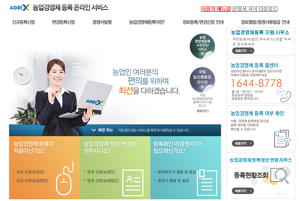 - 온라인 신청: 국립농산물품질관리원 홈페이지(www.naqs.go.kr) 또는 농림사업정보시스템(uni.agrix.go.kr)에서 휴대폰이나 공공 I-PIN으로 본인 인증 후 신청